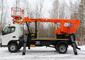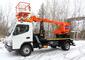 Телескопический, четырехсекционная цельнометаллическая стрела, грузоподъемность 250 кг, высота подъема 18 м, электрозащита до 1000В, вылет 13 м, порот люльки +/- 45 град.